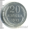 3451 20 копеек. Чеканный блеск 1929 Ag XF Wesh 37 154 Закрыто