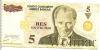4858 5 лир. Турция 2005 F76660318. Бумага XF- Lantil 13 94 Закрыто