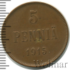 684 5 пенни. Финляндия 1915 Cu XF Siniylev 21 64 Закрыто