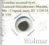 755 Копейка. Медный бунт. Алексей Михайлович. Москва Cu AU/UNC Valiya 50 453 Закрыто