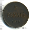 1009 5 пенни. Финляндия 1916 Cu VF/XF Aleksandr El 13 63 Закрыто