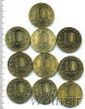 Подборка юбилейных 10 рублей, 9 шт
