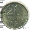 3835 20 копеек 1961 Cu-Ni AU/UNC Pluton 19 79 Закрыто