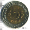 2943 5 рублей. Здание Госбанка СССР в Москве 1991 Cu-Ni Proof (AU/UNC) A-Mishin 19 118 Закрыто