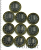 Подборка юбилейных 10 рублей. Регионы России, 11 шт