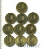 Подборка юбилейных 10 рублей, 10 шт