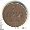793 5 пенни. Финляндия 1901 Cu VF/XF bar-boss 29 529 Закрыто