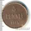 813 5 пенни. Финляндия 1916 Cu AU Wal 21 120 Закрыто