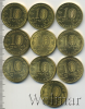 Подборка юбилейных 10 рублей, 10 шт