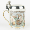 6176 Фарфоровая пивная кружка с металлической крышкой, украшенной фигурой льва и декорированная изображением морской битвы фарфор XX Алексей-арх 44 35 437 Закрыто