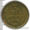 4040 3 копейки 1974 Cu-Zn UNC Novik88 5 8 Закрыто