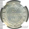 4132 20 копеек 1922 Ag MS 62 Wazir 11 1 795 Закрыто