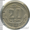 4175 20 копеек 1942 Ni XF urrydan 23 1 128 Закрыто
