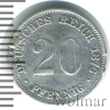 1393 20 пфеннигов. Германия 1875 АА Ag VF NikolasKHB 47 662 Закрыто
