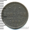1739 1/2 копейки 1908 СПБ Cu VF/XF SSVSSA 37 1 025 Закрыто