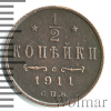 1745 1/2 копейки 1911 СПБ Cu XF- Comutator 27 122 Закрыто