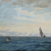 6380 Морской пейзаж "Горбатые киты в проливе Дейвиса". Йенс Карл Рассмуссен, 1870 год холст, масло XX sugarcane 45 97 375 Закрыто