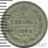 890 5 копеек 1883 СПБ ДС Ag XF- Degtev 39 11 111 Закрыто