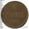 800 5 пенни. Финляндия 1917 Cu AU/UNC Munzen 24 202 Закрыто