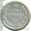 36 20 копеек 1881 СПБ НФ Ag VF/XF Maxbax3 10 456 Закрыто