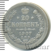 47 20 копеек. Чеканный блеск 1907 СПБ ЭБ Ag XF Aleksandr El 39 335 Закрыто