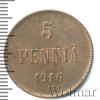 2010 5 пенни. Финляндия 1916 Cu XF+ yrij 31 443 Закрыто