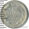 236 5 копеек. Заделано отверстие 1862 СПБ МИ Ag VF/XF evgeny73 23 625 Закрыто