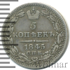 989 5 копеек 1845 СПБ КБ Ag VF/XF Андрай 19 2 164 Закрыто