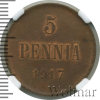 2062 5 пенни. Финляндия 1917 Cu MS 63 BN XoXoT 37 2 844 Закрыто