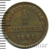 1398 1/2 крейцера. Вюртемберг. Германия 1862 Br XF+ Lapus 15 1 402 Закрыто