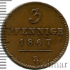 2351 3 пфеннига. Германия. Вальдек-Пирмонт 1867 B Cu UNC Xatuman 23 3 014 Закрыто