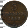 1432 3 пфеннига. Мекленбург-Шверин. Германия 1855 Cu XF Denzl1991 28 1 500 Закрыто