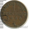 1302 1 пфенниг. Германия 1866 А Br XF Gison 33 428 Закрыто