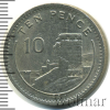 1342 10 пенсов. Гибралтар 1990 Cu-Ni XF- Xatuman 19 73 Закрыто