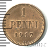 2133 5 пенни. Финляндия 1917 Cu XF+ Hosterov 31 457 Закрыто