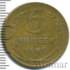 4766 5 копеек 1940 Br UNC Maldek 47 1 126 Закрыто