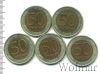 3937 Подборка 50 рублей, 5 шт 1992 биметалл XF+ nefedov.i.s 22 93 Закрыто
