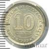 2250 10 центов. Малайя 1939 Ag MS 61 Медвежуть 25 3 231 Закрыто