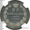 550 25 копеек. PROOF 1832 СПБ НГ Ag PF 62 CAMEO vesta 47 487 364 Закрыто