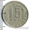 4521 15 копеек 1943 Ni UNC yaloyasi 29 523 Закрыто
