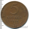 4533 5 копеек 1924 Cu XF aan 29 3 959 Закрыто
