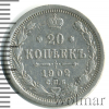 98 20 копеек. Штемпельный блеск 1909 СПБ ЭБ Ag AU NikolasKHB 41 725 Закрыто