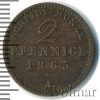 1397 2 пфеннига. Саксен-Веймар-Эйзенах. Германия 1865 А Br AU NewNik 39 954 Закрыто