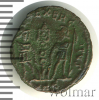 4240 АЕ16. Римская Империя. Император Валентиниан II. ЛС - Бюст в диадеме вправо. ОС - Фигура императора со штандартом, у ног 2 покоренных врага Br VF Coolerst 30 585 Закрыто