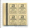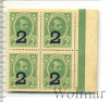 4402 Квартблок денег-марок 2 копейки Александр II. Россия. Брак печати. Сдвиг надпечатки влево 1915 Бумага UNC saf 32 2 559 Закрыто