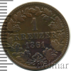 1428 1 крейцер. Нассау. Германия 1861 Cu XF+ smolvill 35 327 Закрыто