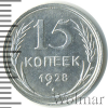 3386 15 копеек 1928 Ag UNC Toha07 24 399 Закрыто