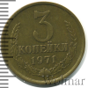 3555 3 копейки. Чеканный блеск 1971 Cu-Zn XF+/AU npa4ka 19 61 Закрыто