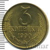 3570 3 копейки. Яркий штемпельный блеск. Разновидность 1990 Cu-Zn AU In77 13 78 Закрыто