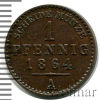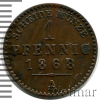 2521 1 пфеннинг. Германия. Реусс-Шлейц 1864 Cu UNC A-Mishin 3 923 19.02.2026 12:48:00